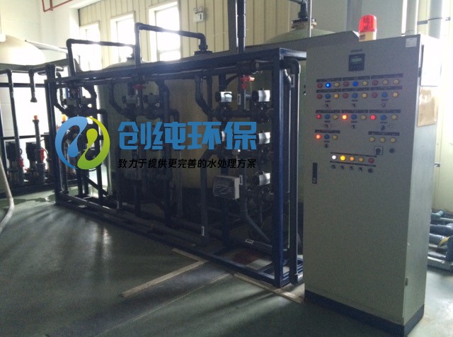 EDI技術(shù)是將電滲析和離子交換相結(jié)合的除鹽新工藝,該設(shè)備取電滲析和混床離子交換兩者之長,彌補對方之短,即可利用離子交換做深度處理,且不用藥劑進行再生,利用電離產(chǎn)生的H+和OH-,達到再生樹脂的目的。